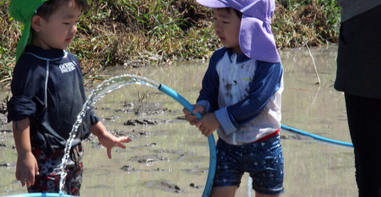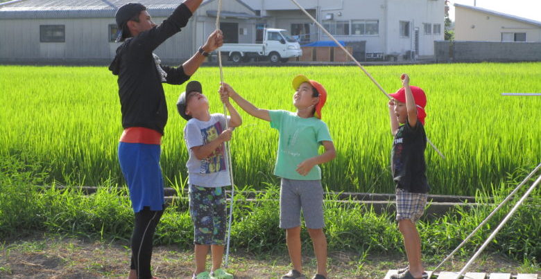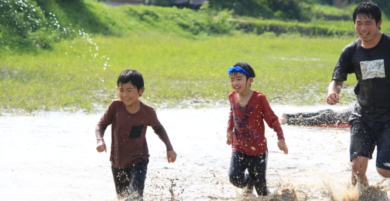 広い田んぼを思いっきり走ろう!木登りや土手滑りも面白い。日帰りでたっぷり満喫しよう。