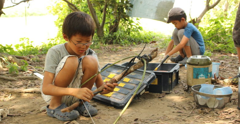 自分たちの基地づくりに挑戦!手作りでブランコやハンモックづくりも楽しい!夜は流れ星に出会えるか!?